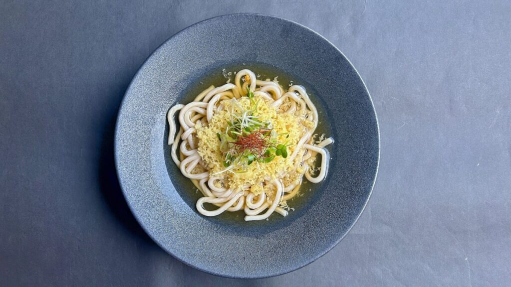 温泉帰りにもぴったりな、冷たい出汁が効いた「冷やしたぬきうどん」をご用意しました。