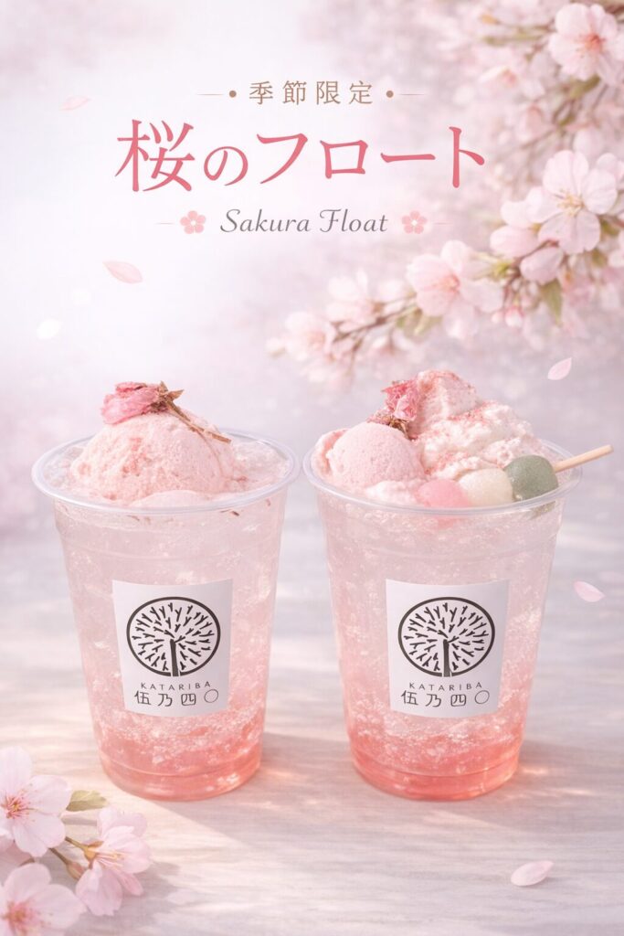 「桜もなか、桜ドリンク、桜フロート」をご用意。