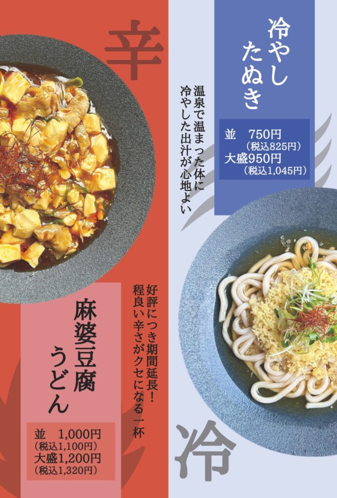 麻婆豆腐うどんが好評につき延長決定!辛味の中にも旨さがあるボリューム満点の一杯。